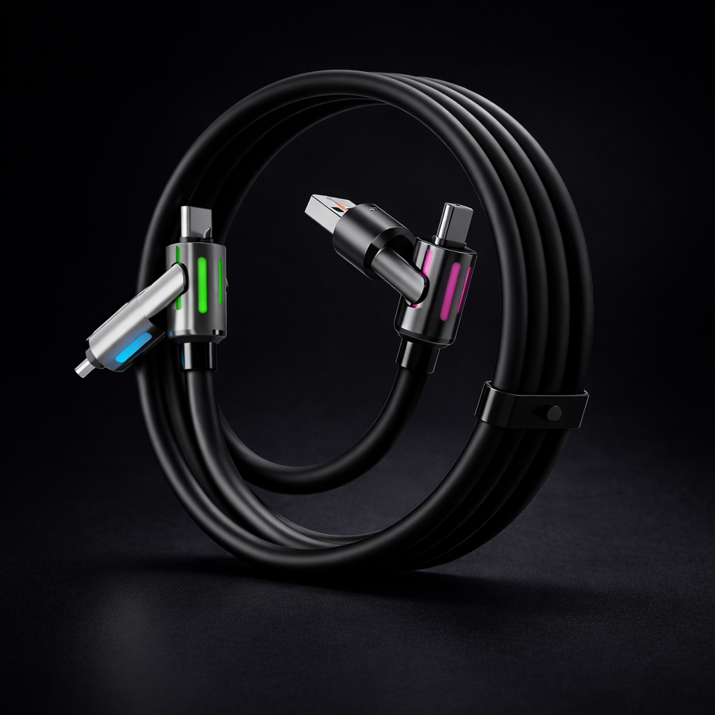Your phone is empty, you’re in a rush – and now it matters.This 240W 4-in-1 fast charging cable solves the problem instantly.
