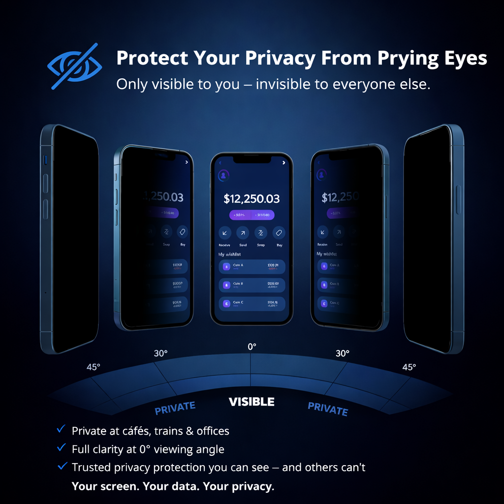 Protect your personal messages, banking apps and private data from prying eyes. Enjoy crystal-clear visibility head-on, while everything fades to black from the sides.